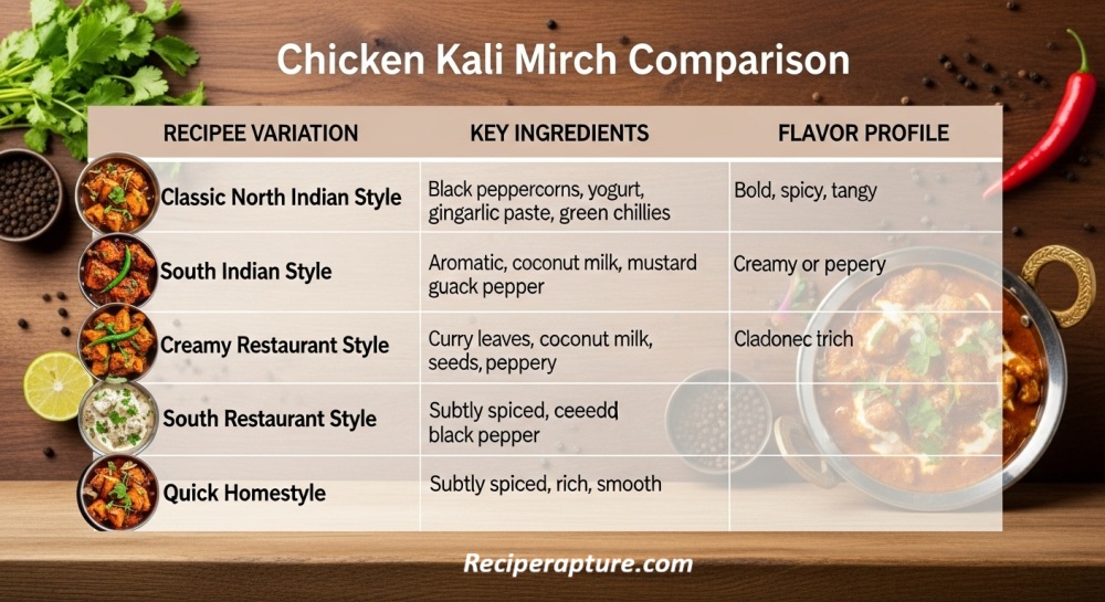 | Green Chili Kali Mirch | More green chilies, less cream | Spicier, rustic flavor |