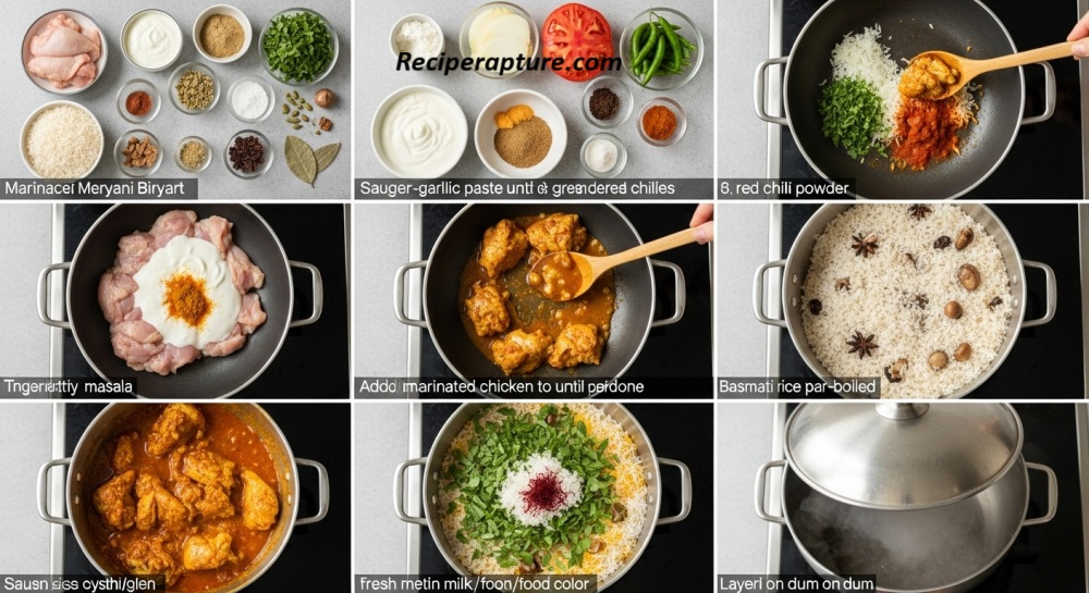 | Layering Biryani | 10 minutes | Chicken at base, rice + herbs on top |