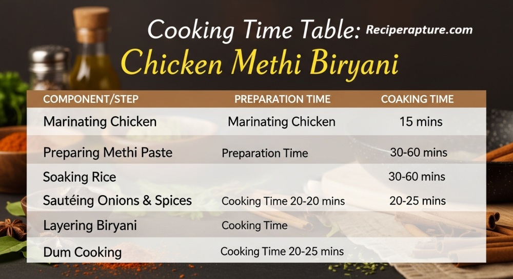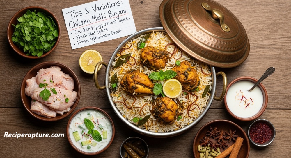 📌 The key balance is between methi’s slight bitterness and the richness of chicken and rice.