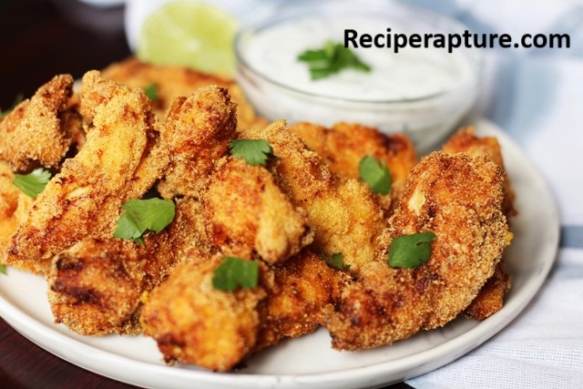 * Gradually add water, mixing to coat the chicken in a thick batter. It should cling to the chicken without being too runny.