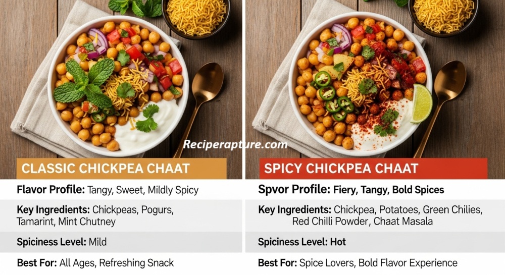| Aloo Chana Chaat | Adds boiled potatoes | More filling, hearty |