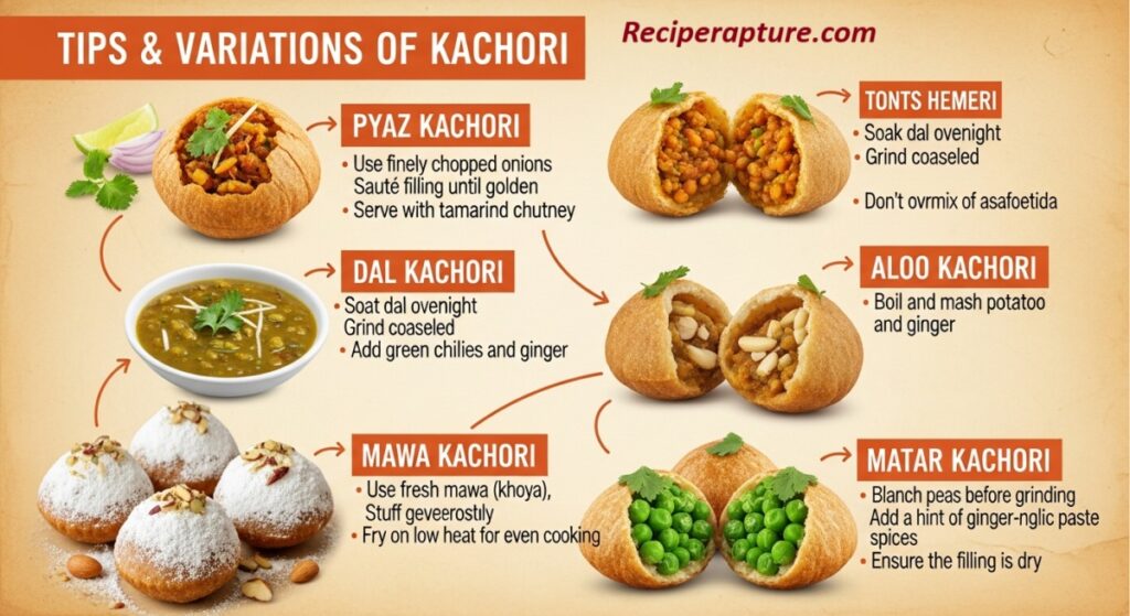 Homemade crispy kachoris are easier to prepare than they seem; just a well-kneaded dough, a dry aromatic filling, and slow frying create the perfect golden snack enjoyed across generations.