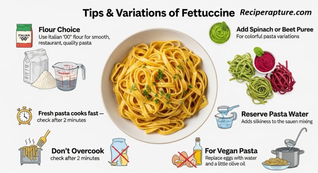 - Flour Choice: Use Italian “00” flour for smooth, restaurant-quality pasta.