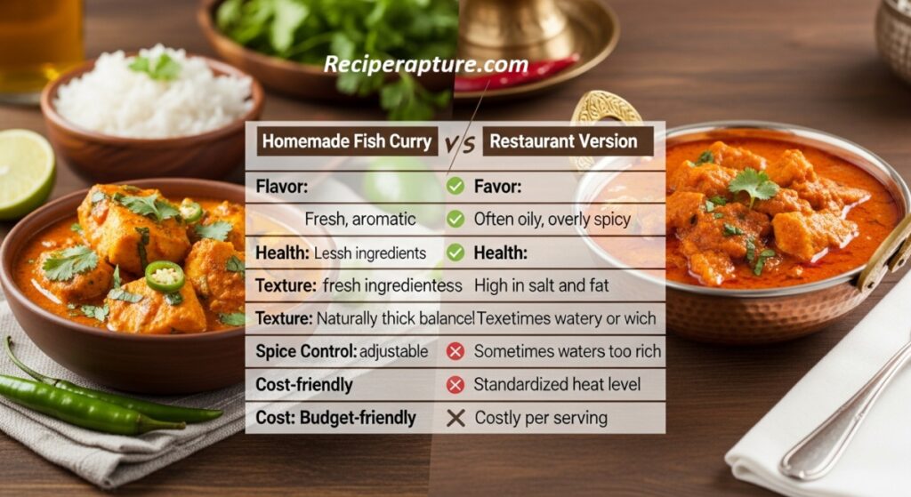 Comparison Table – Homemade vs. Restaurant Fish Curry