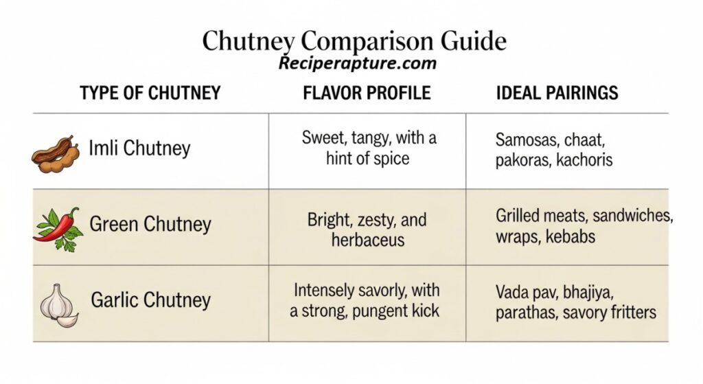 | Type of Chutney | Flavor | Best For |