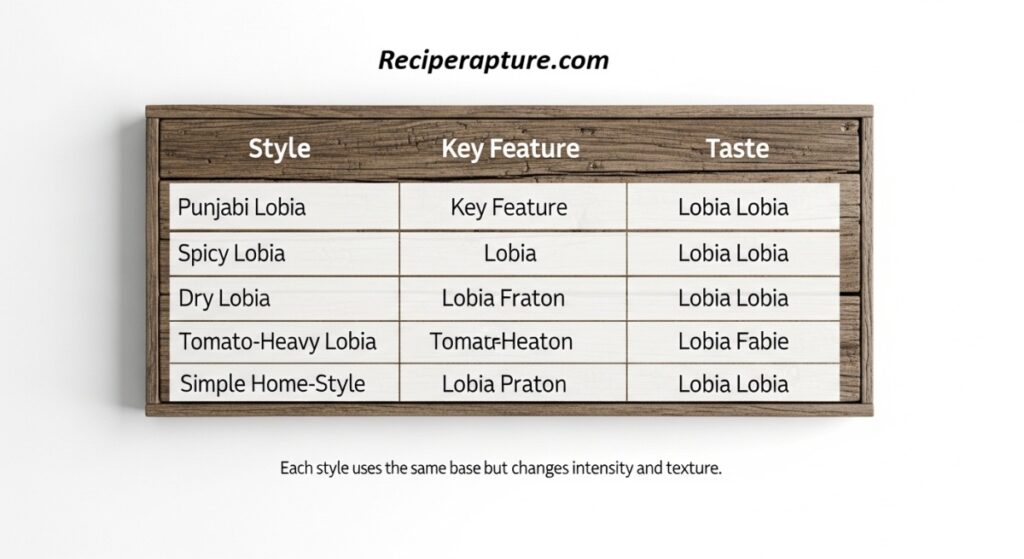 | Punjabi Lobia | Thicker gravy | Mild & earthy |
