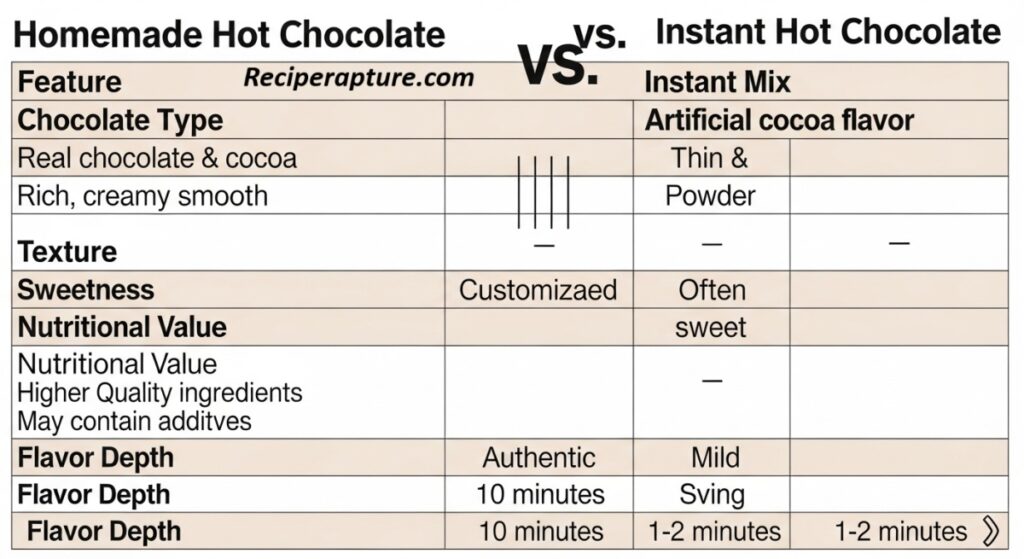 | Feature | Homemade Hot Chocolate | Instant Mix |
