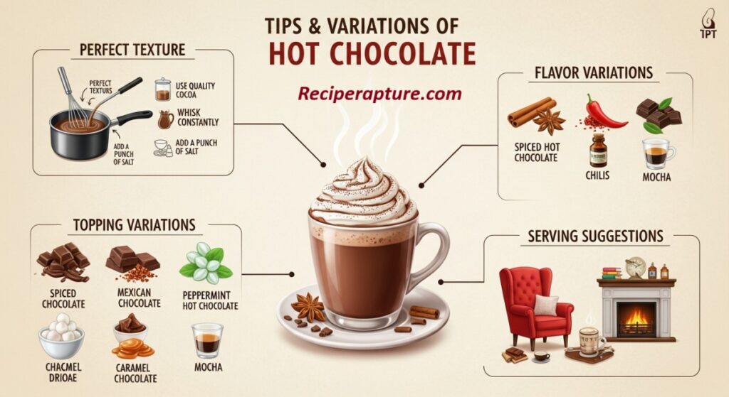The beauty of classic hot chocolate lies in its simplicity and quality ingredients. Use whole milk for a creamy base, or mix it with cream for extra richness. Real dark or semi-sweet chocolate gives authentic depth, while unsweetened cocoa powder enhances the chocolate flavor.