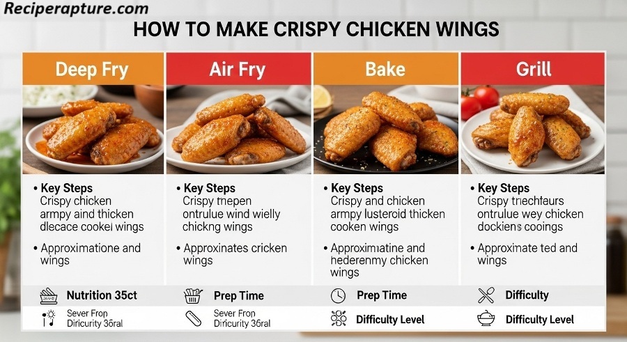 Crispy chicken wings are a global favorite crunchy on the outside, juicy inside, and endlessly versatile. You can keep them simple with a dry rub or toss them in sauces like Buffalo, BBQ, or honey garlic. The secret lies in drying the wings thoroughly, using baking powder (not soda), and cooking at high heat for that perfect crunch. This easy guide walks you through everything step by step.