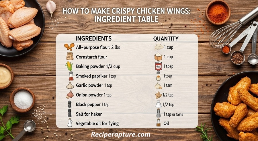 Ingredient Table for Crispy Chicken Wings