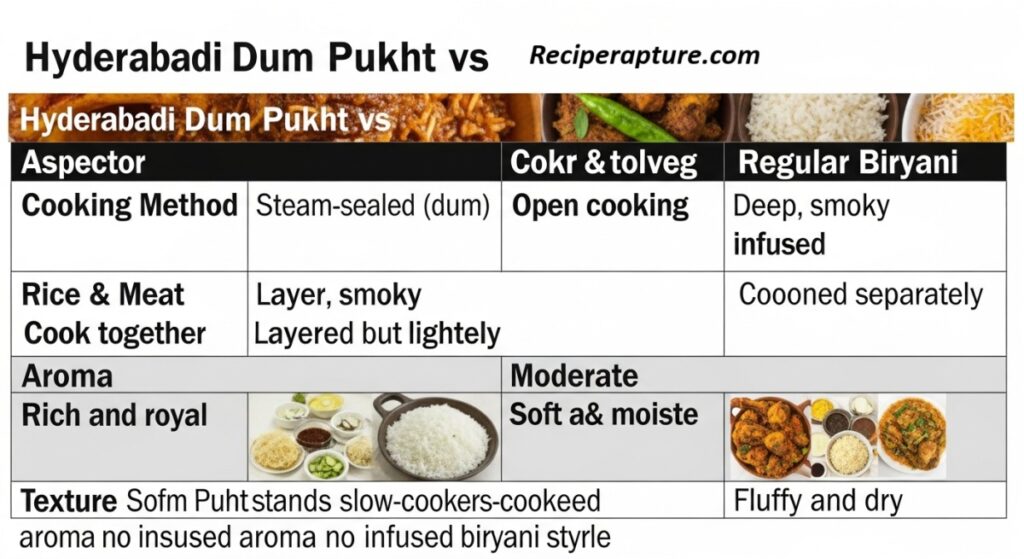 Comparison Table – Hyderabadi Dum Pukht vs Regular Biryani