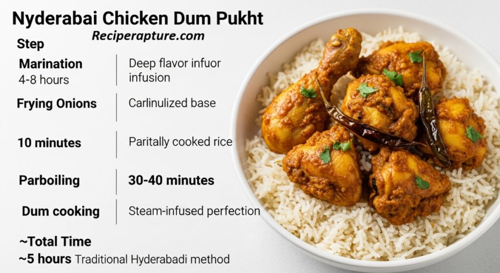 | Total Time | ~5 hours (including marination) | Traditional Hyderabadi method |