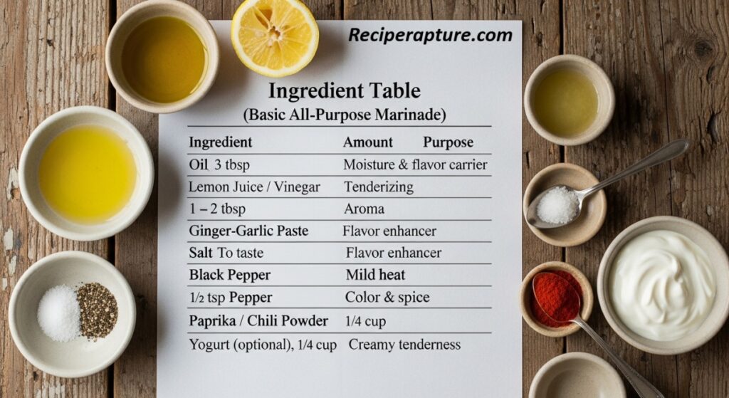 Ingredient Table (Basic All-Purpose Marinade)