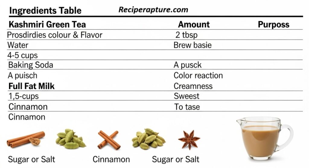 | Kashmiri Green Tea | 2 tbsp | Provides color & flavor |