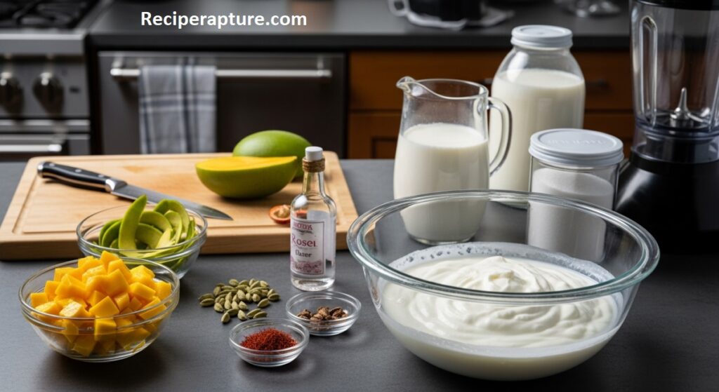 The soul of any lassi is fresh, thick dahi, preferably homemade or traditionally cultured yogurt. Using full-fat yogurt gives your sweets a velvety texture and natural richness. Along with this, cold water helps adjust thickness without changing flavor, ensuring a balanced and drinkable consistency. Sugar is essential for a classic sweet lassi, but you can also replace it with honey or jaggery for a deeper, caramel-like sweetness.