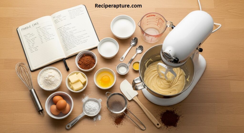 The harmony of the ingredients in marble cake is what makes it so appealing. While butter and sugar contribute richness and sweetness, all-purpose flour offers structure. Milk moistens the batter, and eggs provide lift and a soft crumb.