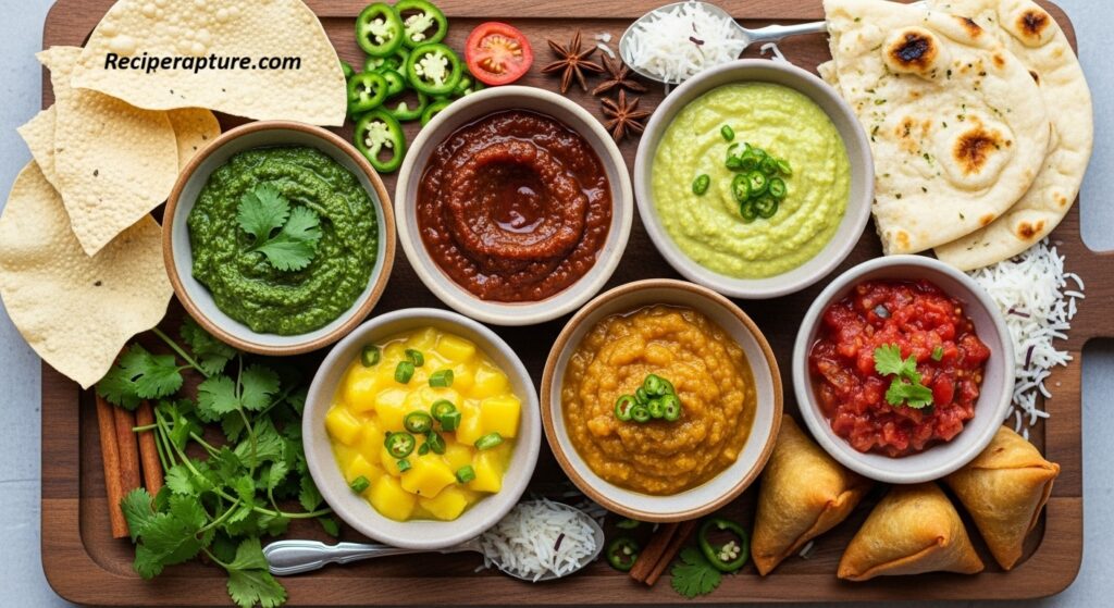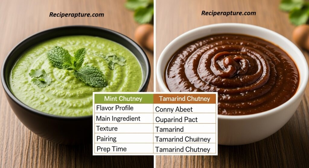 📌 Mint chutney is bright and refreshing, while tamarind chutney is sweet and tangy—both are often served together.