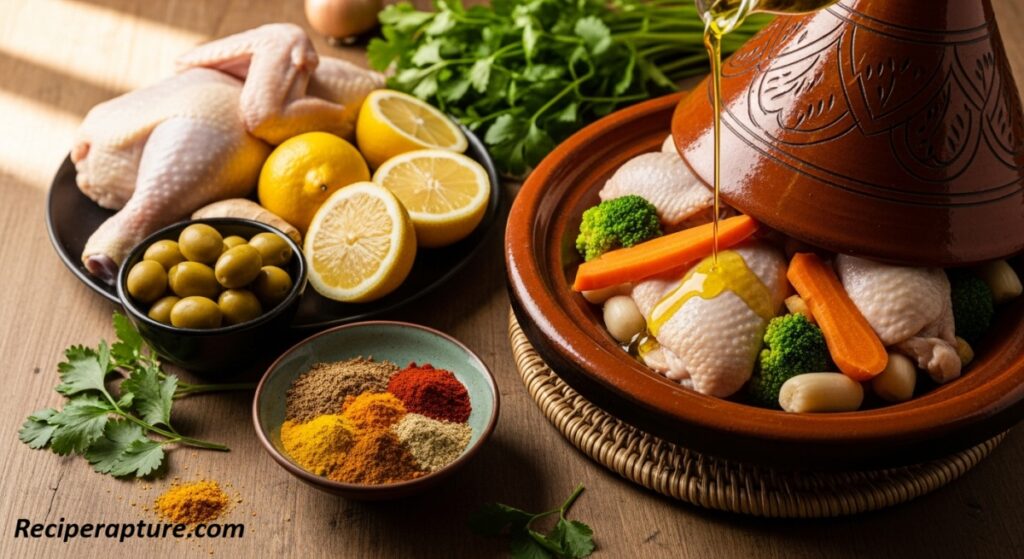 The foundation of Moroccan chicken lies in its spice blend. Ingredients like cumin, paprika, coriander, cinnamon, and ginger create warmth rather than heat. Chicken—preferably bone-in—is used for its ability to absorb flavors during slow cooking. Onions form the base of the sauce, breaking down into a natural sweetness, while garlic adds depth. Tomatoes or tomato paste provide body, and a touch of honey or dried fruit balances the spices with subtle sweetness. Olive oil carries the flavors, while fresh herbs bring freshness at the end.