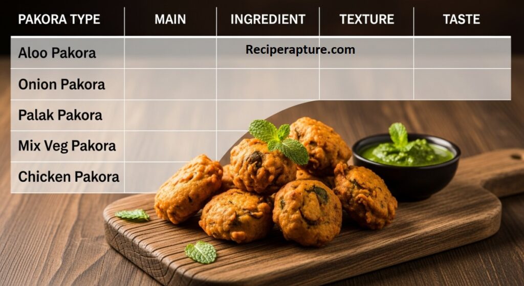 | Pakora Type | Main Ingredient | Texture | Taste |