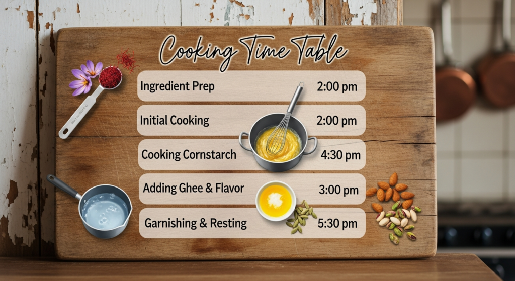 | Garnishing & Resting | 2–3 min | Add nuts or saffron, let settle |